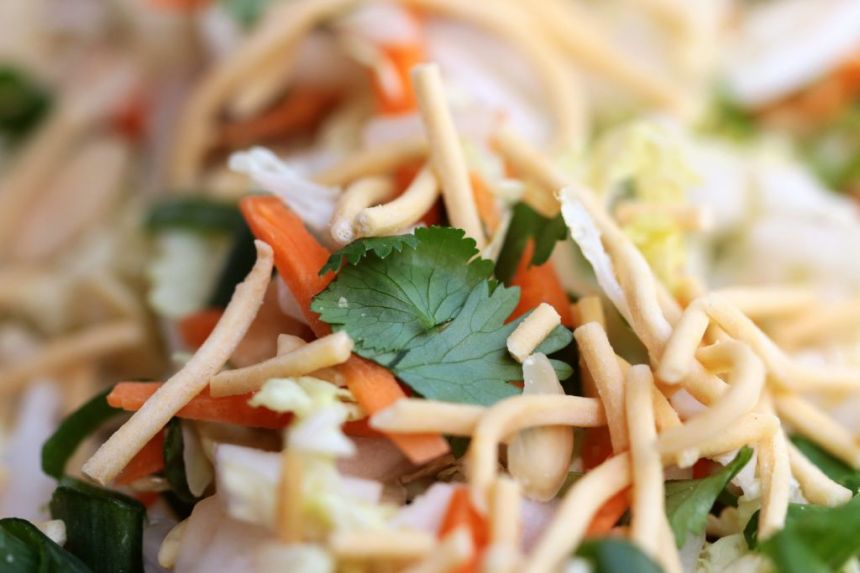 Mrs. Chang’s Chinese cabbage and crispy noodle salad is a staple at Australian bar-be-ques and family gatherings. It is a very simple salad – wombok, slivered almonds, shallots and crispy noodles – but it has a sweet and tangy dressing that makes it an absolute winner. So why mess with it by adding different ingredients? Why not keep it just as it always has been?